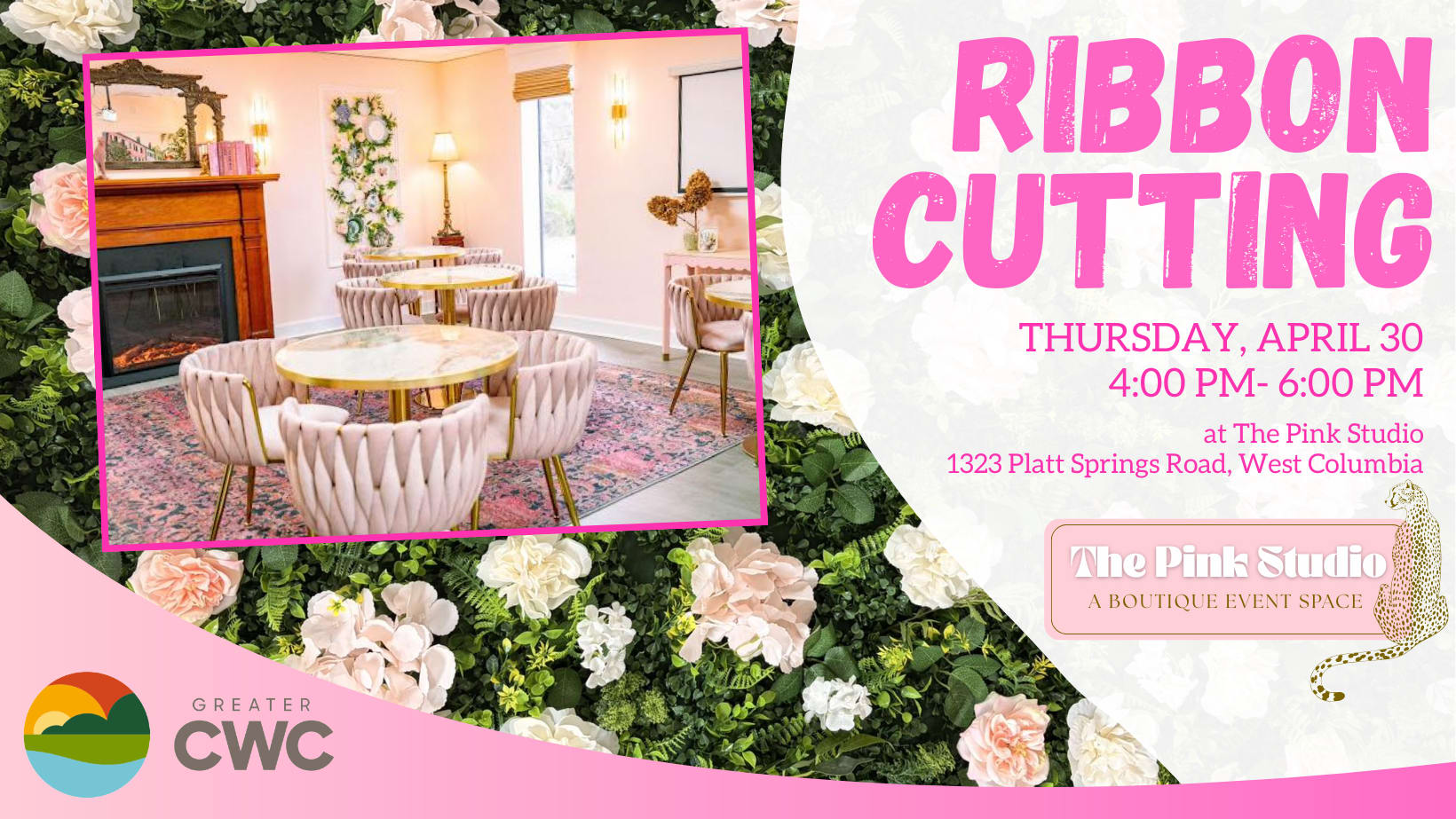 Join us as we celebrate the Ribbon Cutting of The Pink Studio, a charming boutique event space created by our very own Chamber team member, Hallie Campbell. Designed for intimate gatherings and thoughtfully curated events, The Pink Studio brings a fresh, stylish, and welcoming atmosphere to the Greater CWC community. To make the celebration even more special, we’re inviting everyone to wear pink and help us fully embrace the spirit of the space. Come tour the studio, connect with fellow Chamber members, and show your support as we officially welcome this beautiful new addition to our business community.