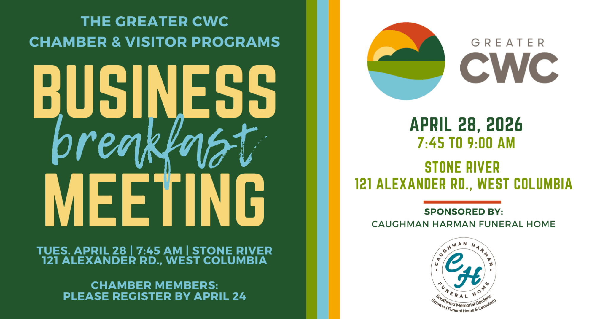 April Greater CWC Business Breakfast Meeting sponsored by Caughman Harman Funeral Home